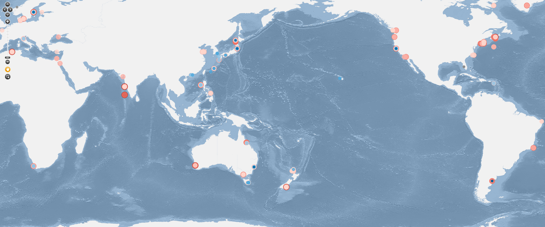 Out-of-range observations of significant rafts of giant kelp (Macrocystis pyrifera) washing ashore in southern NSW in winter 2020. On 9 August 2020, two local marine naturalists on the south coast of New South Wales, Australia noticed a significant amount of a large unfamiliar kelp washed up on a local beach. Following some quick confirmations via phone and email, it was revealed that the unfamiliar seaweed was giant kelp (Macrocystis pyrifera): a species whose closest known populations are ~450 km away to the south (in Tasmania and western Victoria) and whose transport to New South Wales would have required oceanic rafting over several weeks and hundreds of kilometres against the prevailing south-flowing East Australian Current. Subsequent community-led searches over the following days confirmed four more locations of often-substantial amounts of giant kelp wrack, as well as many more anecdotal and unconfirmed accounts.